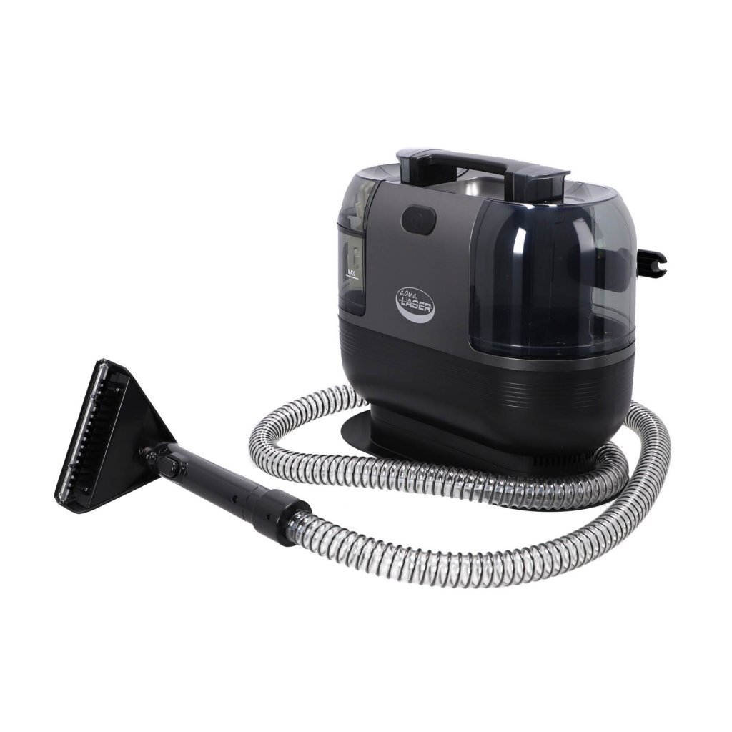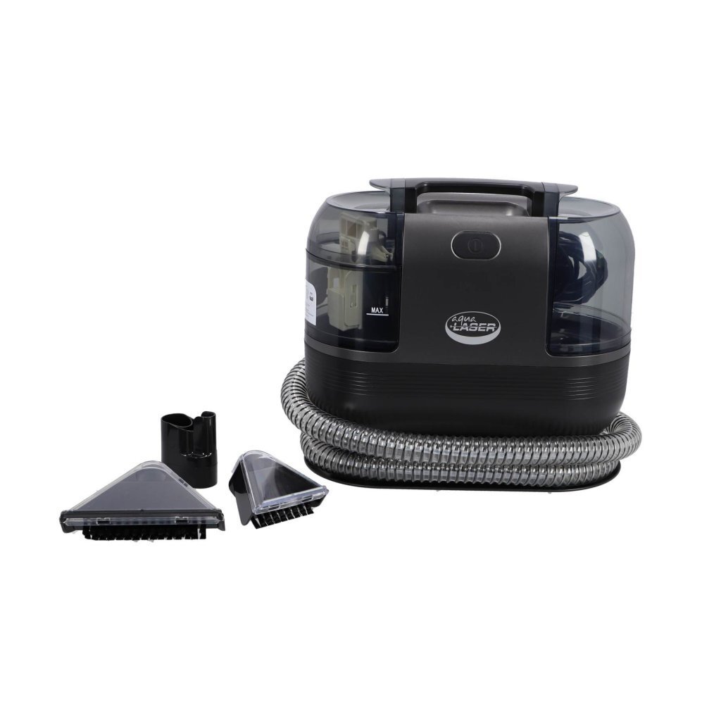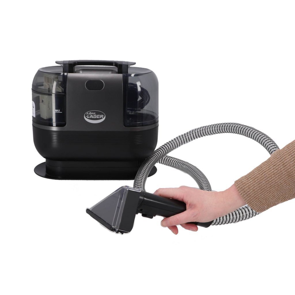 De Aqua Laser draagbare vlekkenreinigermet flexibele slang verwijdert snel en moeiteloos allerlei vlekken op vloerbedekkingen en meubels. Dankzij de slang van 1,5 m en de kabel van 5 m kun je nu overal makkelijk bij. De Aqua Laser draagbare vlekkenreiniger is super licht van gewicht (maar 3 kg) en gemakkelijk te gebruiken en op te bergen dankzij het compacte formaat, en de handige draaggreep.Zet de vlekkenreiniger eenvoudig naast de bank op de vloer en door middel van de handborstels die je op de extra lange slang kunt monteren, poets je snel en handig de vlek van de bank. Je hoeft alleen water te vullen in de tank maar je kunt ook een reinigingsmiddel toevoegen, dat speciaal voor reinigingsmachines is ontwikkeld.
