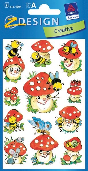 Avery AV-4304 Etiket 3 Vel Paddenstoelen 10 Setjes met 3 Vel