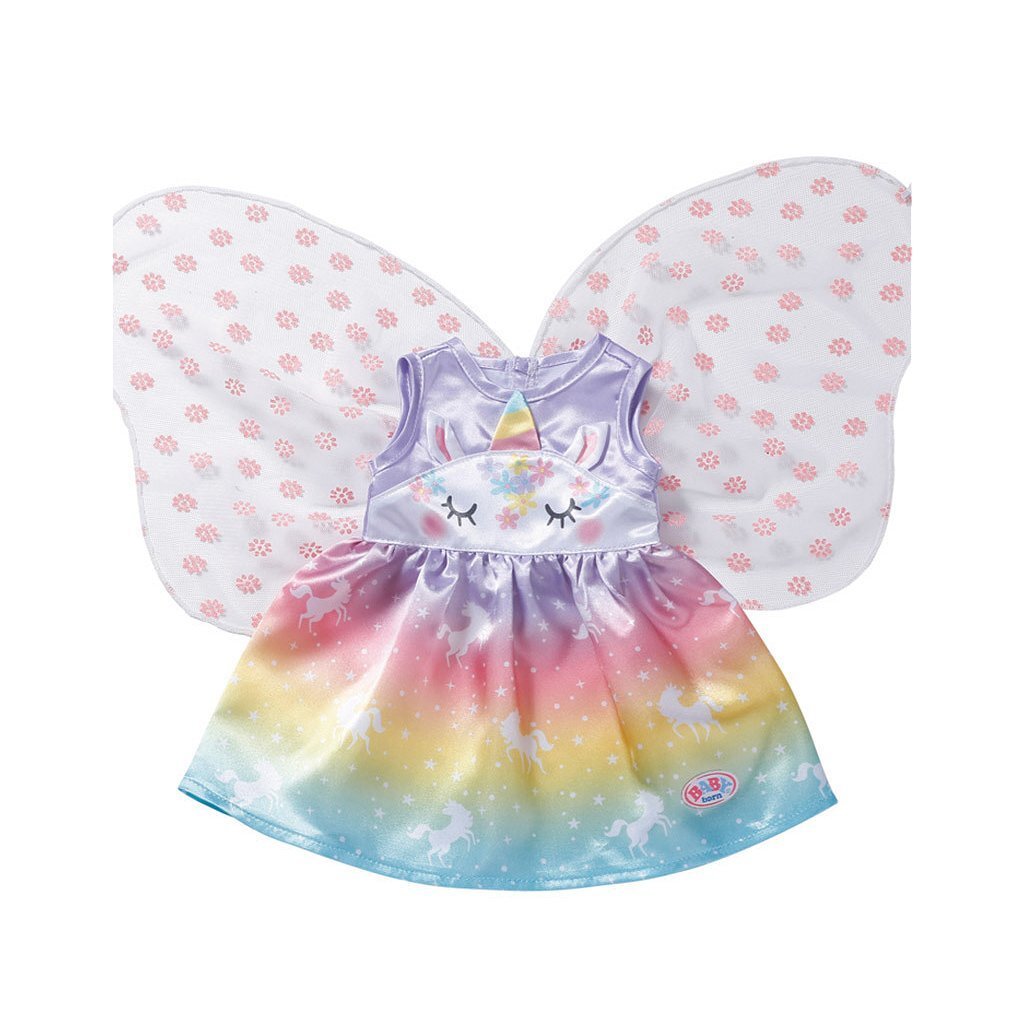 Met deBaby Born eenhoorn elfjes outfit kunnen kinderen hun Baby Born pop stijlvol aankleden. De armen kunnen door de lusjes van de vleugels worden gedaan. De set bevat een eenhoorn elfjesoutfit en een kleerhanger. Voor poppen van 43 cm lang. Geschikt voor kinderen vanaf 3 jaar.
