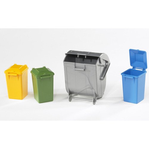 Deze Bruder set van afvalbakken bevat 3 kleine, gekleurde bakken en een grote, grijze bak. De producten van Bruder zijn gemaakt van hoogwaardige kunststof en zorgen voor veel speelplezier. Geschikt voor kinderen vanaf 3 jaar.