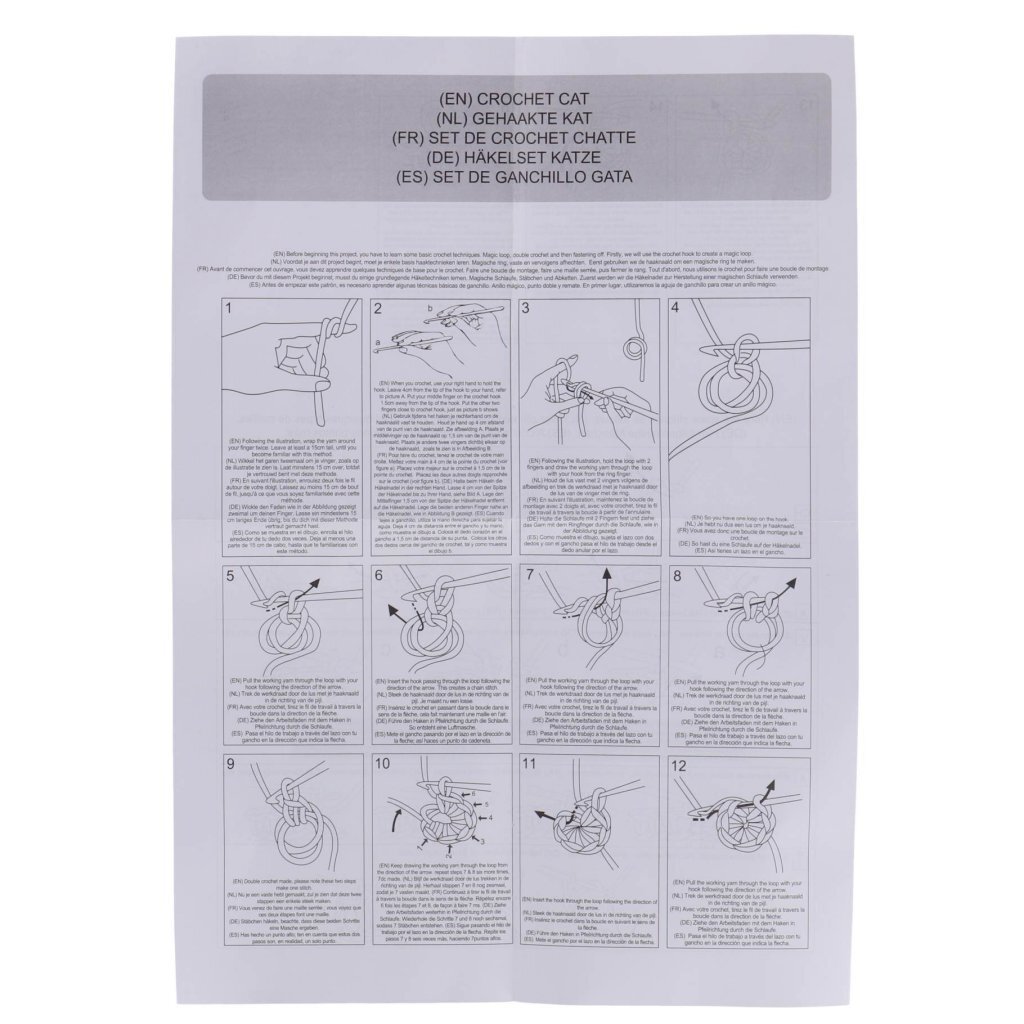 Haakset voor het maken van twee schattige katjes. Het pakket bevat wit, zwart en roze wol, vulling, 4 oogjes, een plastic naald en haaknaald. De katjes zijn 13 x 6,5 x 10,5 cm groot. Geschikt voor kinderen vanaf 12 jaar.