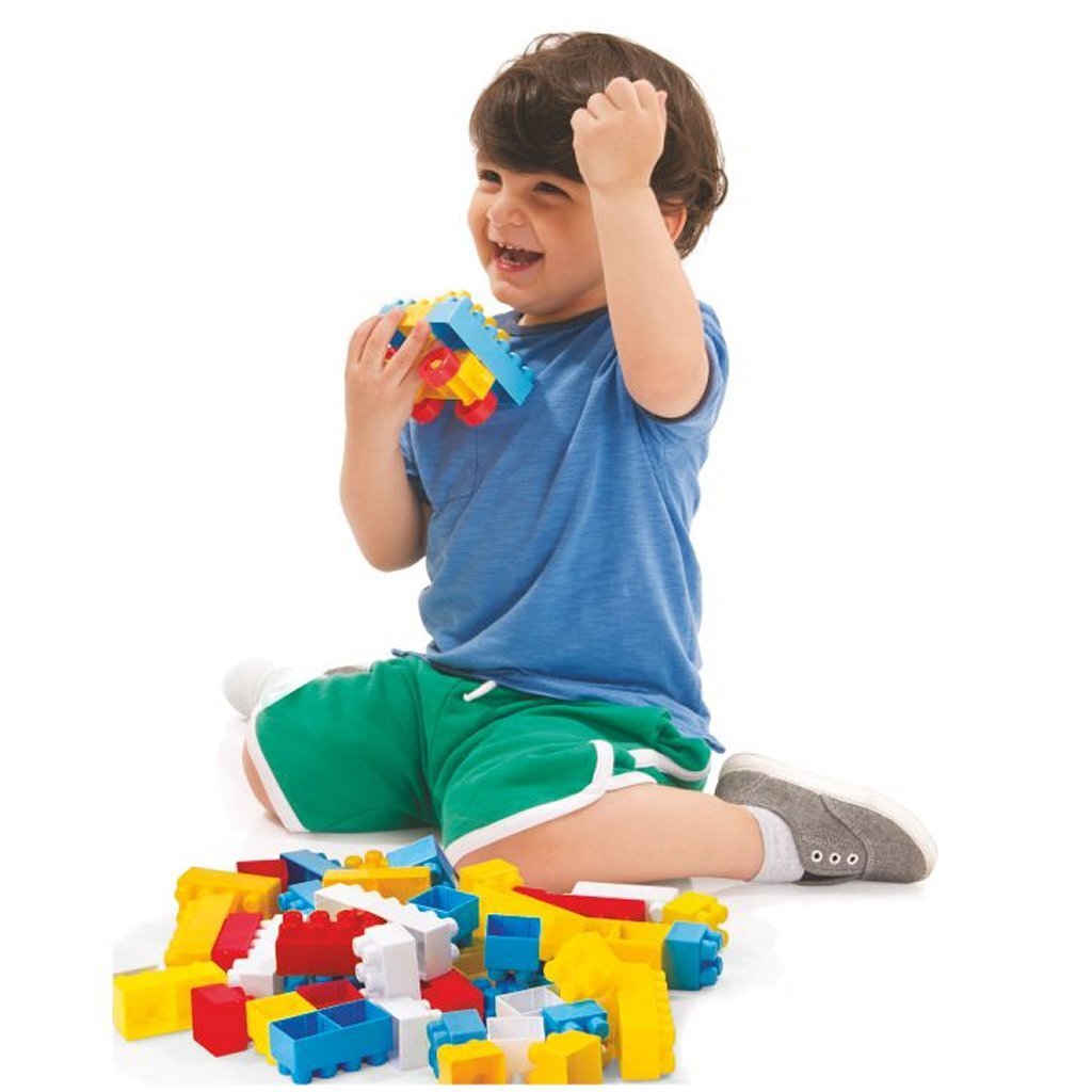 Deze doos bevat 56 blokken, zodat kinderen vanaf 18 maanden hun eerste gebouwen kunnen bouwen: torens, bruggen, auto’s…