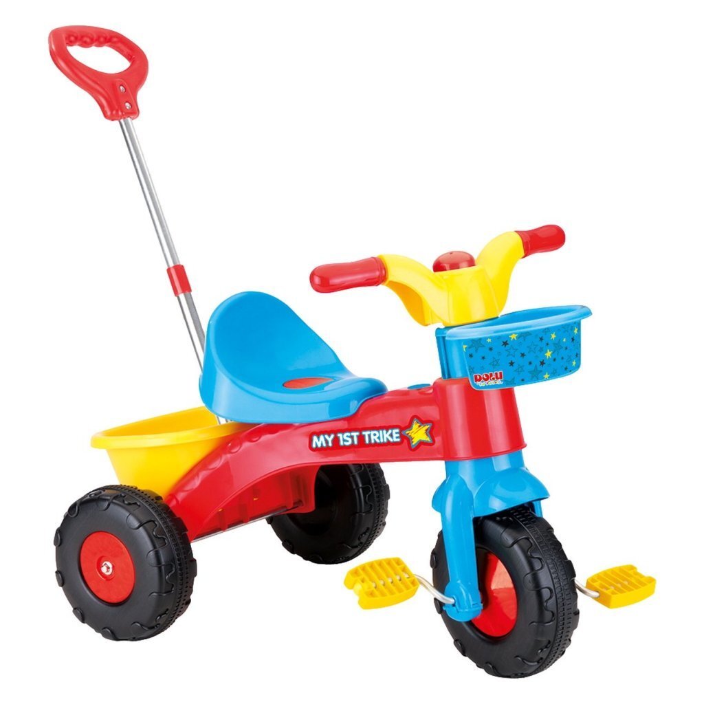 Dolu Mijn Eerste Driewieler met Duwstang 90x45x84 cm Blauw/Rood/Geel