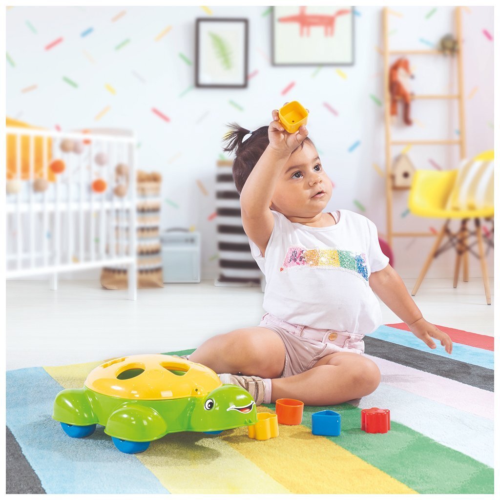 Dolu vormenstoof schildpad met 10 vormpjes. Geschikt voor kinderen vanaf 12 maanden.