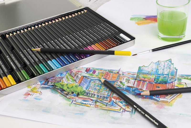 Aquarelpotloden bijzonder geschikt voor schilder- en tekenlessen. Met water te mengen, behouden zowel droog als nat hun intensieve en briljante kleur. Breukvast en makkelijk te slijpen. ook te gebruiken op leisteen en kunststof. In metalen etui met 24 potloden.