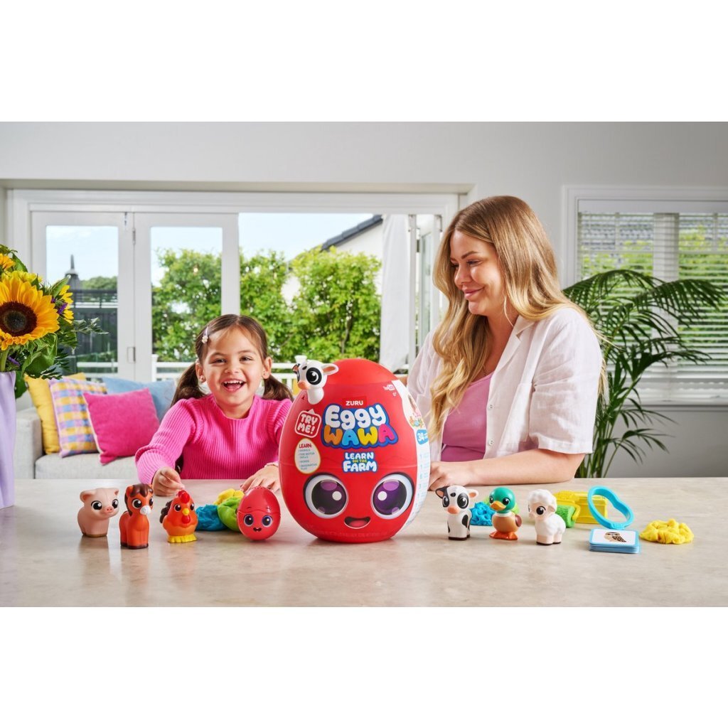 Verrassingsei met 34 leuke verrassingen. Leer alles over de boerderij met schattige diertjes, klei, dierenkaartjes, en nog veel meer.