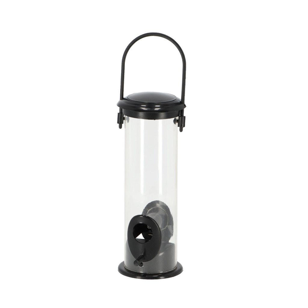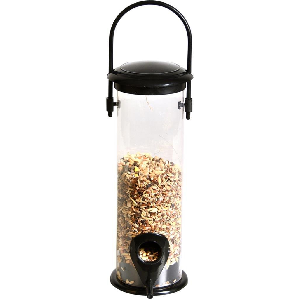 Deze zaadsilo houdt het voer droog en beschermt het tegen weersinvloeden. De silo is voorzien van een zitstok zodat de vogels makkelijk bij het voer kunnen. Kenmerken: makkelijk te vullen, het voer blijft droog, in trendy zwart.