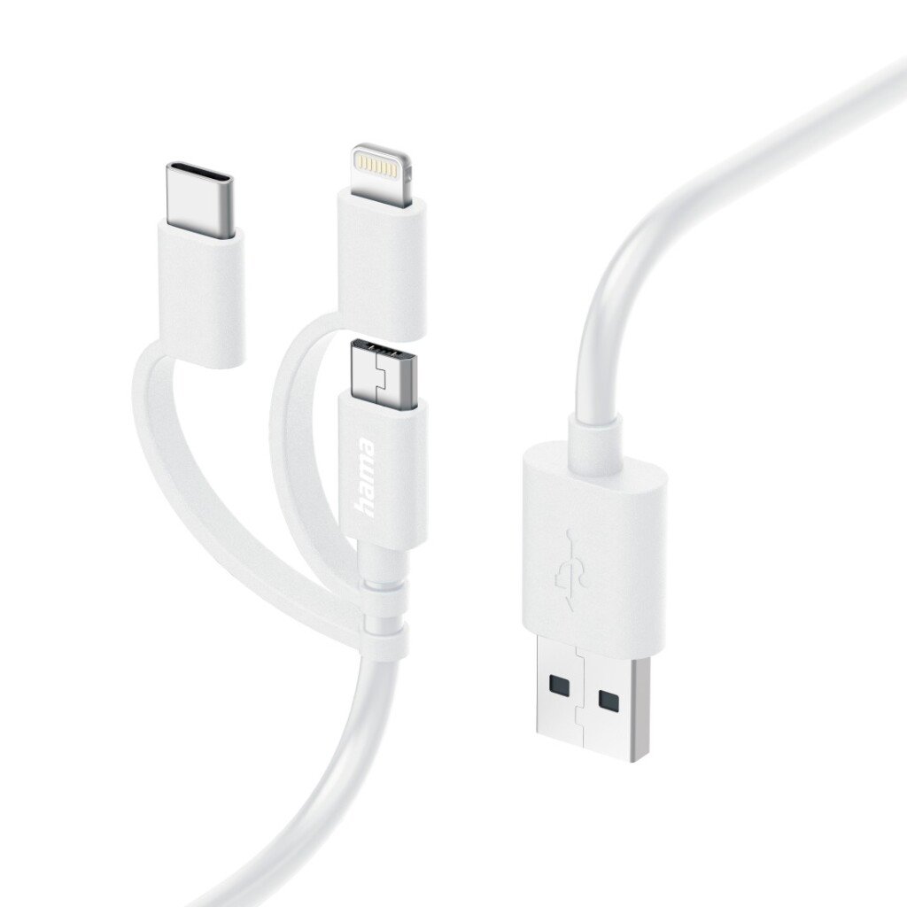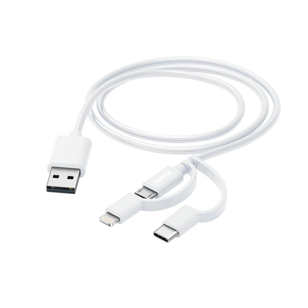 Hama 3in1 Multi-oplaadkabel USB-A – Micro-USB USB-C En Lightning 1,0 M Wit
