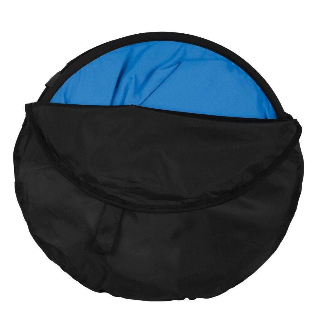 - Dankzij de veerring is de achtergrond snel in te klappen tot een derde van het formaat en dus plaatsbesparend te vervoeren (diameter transportformaat 65 cm)