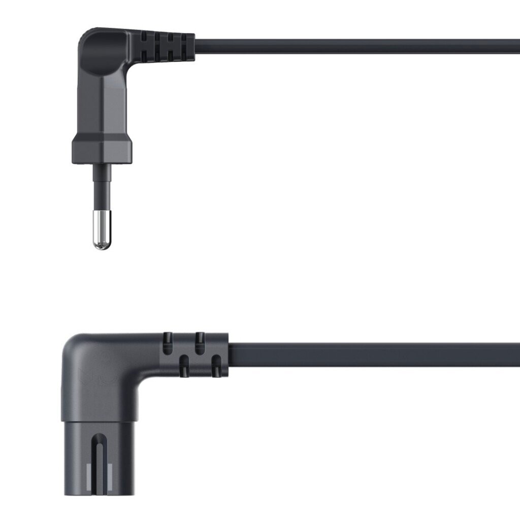 - Haakse stekker met aansluiting volgens Europese standaard: Euro 8 naar dubbele groef (C7)