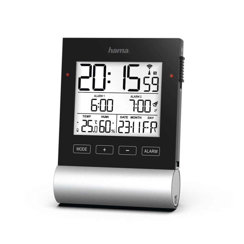 • Radiogestuurde DCF-klok met digitale weergave van tijd, wektijd, datum, temperatuur en luchtvochtigheid