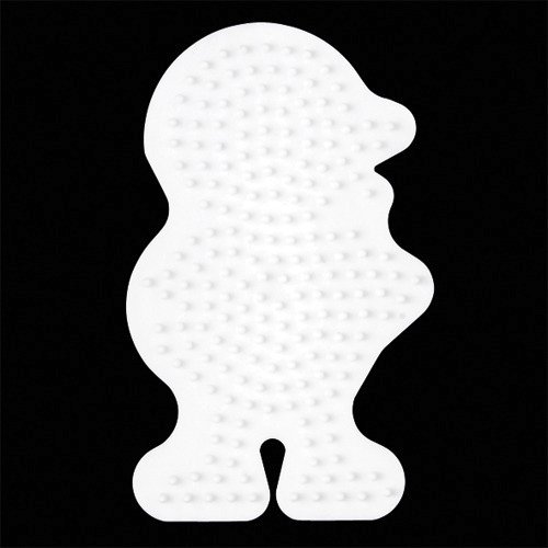 Strijkkralen kun je in bijna elk gewenst patroon leggen en dan door middel van strijkpapier en een strijkijzer samensmelten. Maar daarvoor heb je natuurlijk wel een grondplaat nodig. Witte grondplaat in de vorm van een kip.