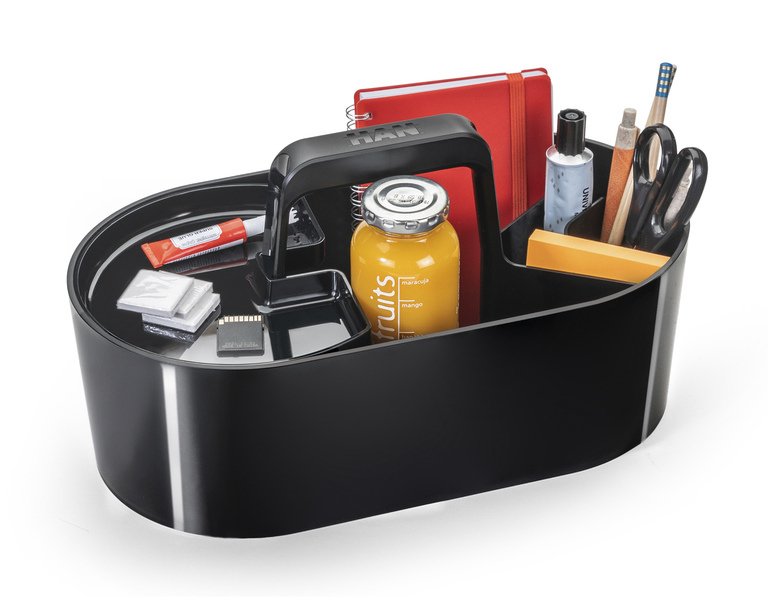 De LOFT Organiser kan op vele manieren ingezet worden (kantoor, thuiskantoor, hobbyruimte, badkamer, keuken, etc.). De organiser bestaat uit 4 compartimenten van verschillende groottes en een uitneembaar bakje. Het ordenen, opbergen en vervoeren van werkmateriaal, persoonlijke spullen en klein keukengerei is heel eenvoudig door de ergonomisch gevormde handgreep. De organiser is vervaardigd van hoogwaardig en hoogglans ABS kunststof. Formaat toolbox 340 x 187 x 188 mm. Kleur: Zwart