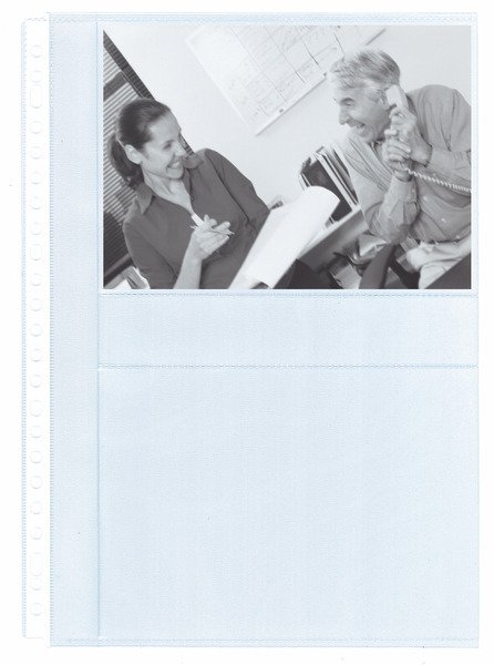 Fotoshowtas A4 vervaardigd van PP 120 mµ, foto/copysafe en antistatisch. Ponsgaten met witte strook versterkt. Leverbaar voor diverse fotoafmetingen. Ponsing: 2/4/23 gaats. Per 10 in krimp. Basic A4. 13x18cm verticaal.