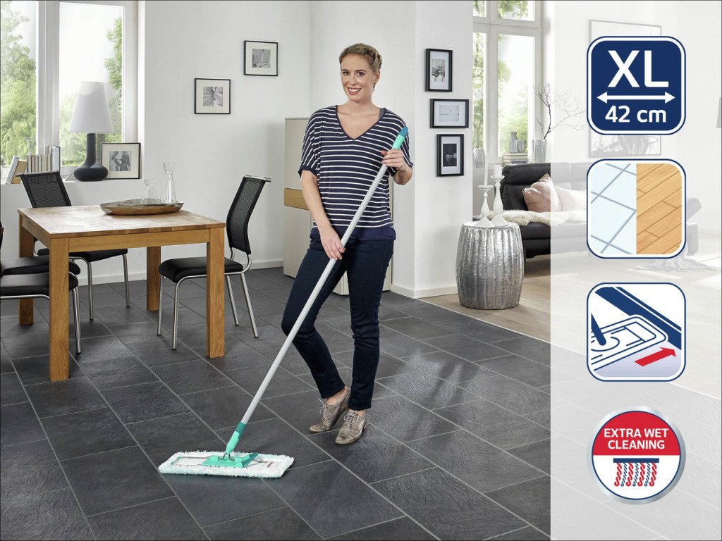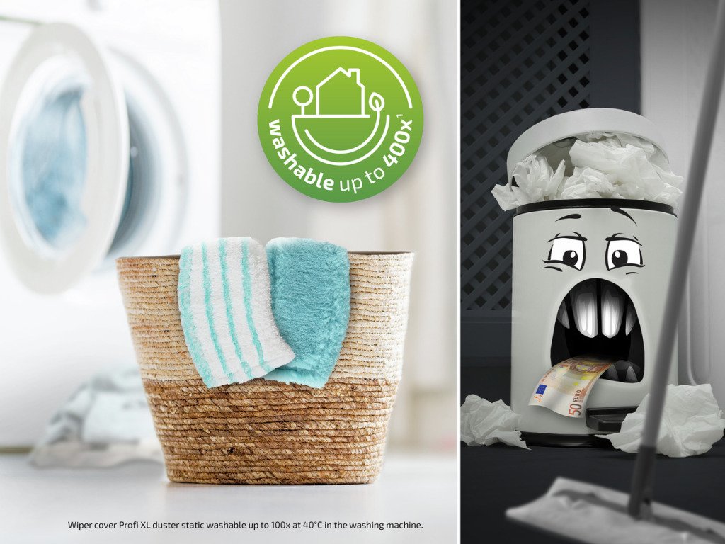 Je kunt de micro duo vloerdoek 400 keer op 60°C in de wasmachine wassen, zonder dat de reinigingsprestaties minder worden. Voor de stabiele Profi XL vloerwisser met zijn wisbreedte van 42 cm zijn ook grote vloeroppervlakken geen probleem. Met het flexibele 360°-gewricht kun je gemakkelijk zigzag vloerwissen. De stalen steel kun je neerklappen totdat hij plat op de vloer ligt. Zo zijn ook moeilijk toegankelijke plekken, bijvoorbeeld onder kasten en bedden, gemakkelijk te bereiken. Gratis bij deze vloerwisser krijg je de duurzame stofdoek Profi XL duster static, een vloerdoek voor droog stofwissen. Stof, vuil en zelfs dierenharen worden aangetrokken als door een magneet en vastgehouden in de vezels. Duster static is te gebruiken met vloerwisser Profi XL, is geschikt voor alle harde vloeren en kan op 40°C 100 keer gewassen worden in de wasmachine, zonder zijn reinigingskracht te verliezen. In vergelijking met wegwerp-vloerdoekjes is dat veel duurzamer, en ook nog eens goedkoper. Bijpassende upgrades voor de vloerwisser zijn afzonderlijk verkrijgbaar: de vloerdoekpersen Profi XL Mobile en Compact, waarmee de vloerdoek comfortabel en grondig uitgeperst wordt, zonder bukken, zonder met je handen in het vieze water te hoeven.Getest op gemodificeerd vacciniavirus Ankara en de bacterie Staphylococcus aureus met micro duo vloerdoek en water (watertemperatuur 35?C).