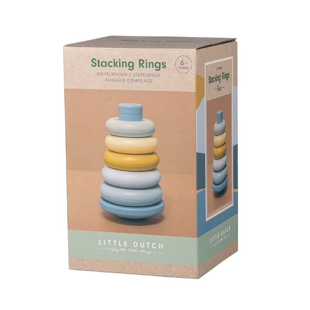 Laat je kindje ringen sorteren en stapelen, met deze supermooie stapelringen van Little Dutch. Dit speelgoed is uitgevoerd in prachtige kleuren, die mooi in je interieur passen: diverse tinten blauw, okergeel en zachtgroen. Er zijn 5 verschillende formaten ringen om mee te stapelen, variërend in diameter tussen 8,5 en 13,5 cm. Totale hoogte van het artikel: 20,5 cm. Extra uitdaging: de basis is half rond, waardoor hij een beetje wiebelt op de grond. Goed voor de ontwikkeling van de motoriek! De stapelringen zijn gemaakt van ABS, wat gemakkelijk vast te pakken is voor kleine kinderhandjes. Geschikt voor kinderen vanaf 6 maanden.