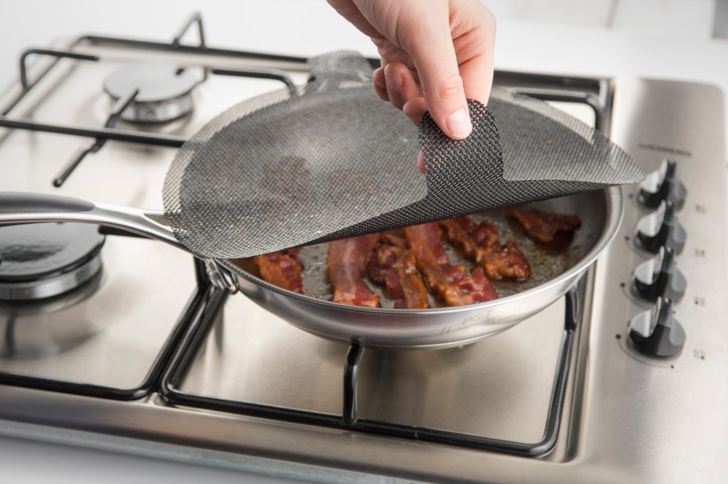Bovendien kan de anti-spatdeksel op de keukentafel worden gebruikt als een onderlegger voor uw pannen en potten.