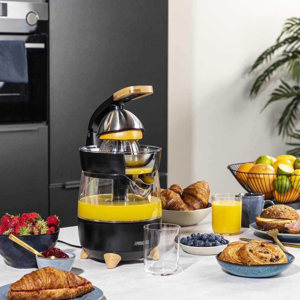 De Princess Citruspers Pure is één van de oogstrelende producten in de Pure-serie van Princess. Alle apparaten in de Pure-serie kenmerken zich door het gebruik van bamboe. Dit duurzame en slijtvaste materiaal is niet alleen mooi om te zien, maar zorgt er ook voor dat de stevig oogt. Daarnaast vervormt bamboe nauwelijks waardoor de voetjes niet buigen en de citruspers niet gaat schuiven wanneer je hem gebruikt.Citruspers kopen voor alle citrusfruit