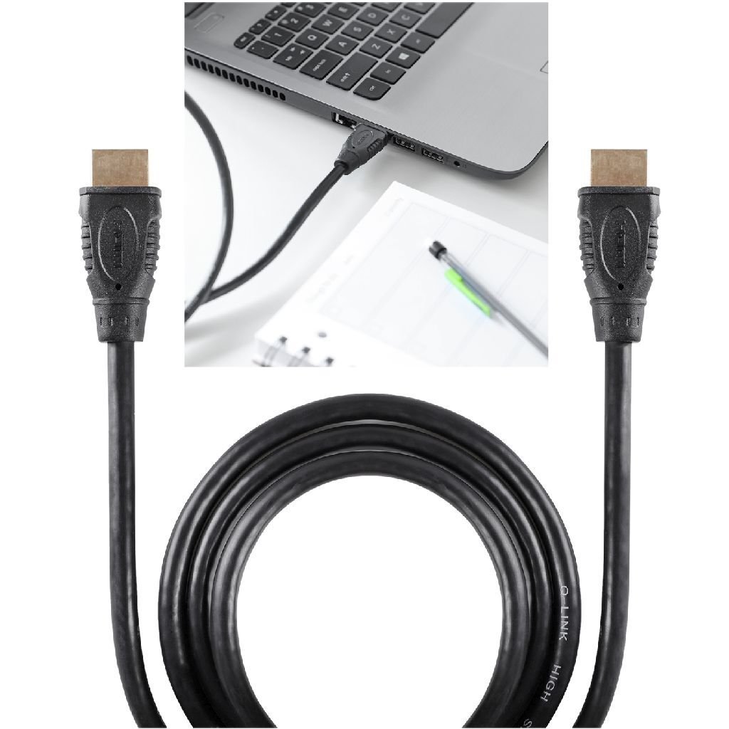 Met deze zwarte Q-Link HDMI kabel van 1,8 meter bereik je de gewenste HD kwaliteit met hoge resolutie en geluidskwaliteit. Perfect om een monitor aan te sluiten op een laptop, geschikt voor spelcomputers, beamers en digitale TV.