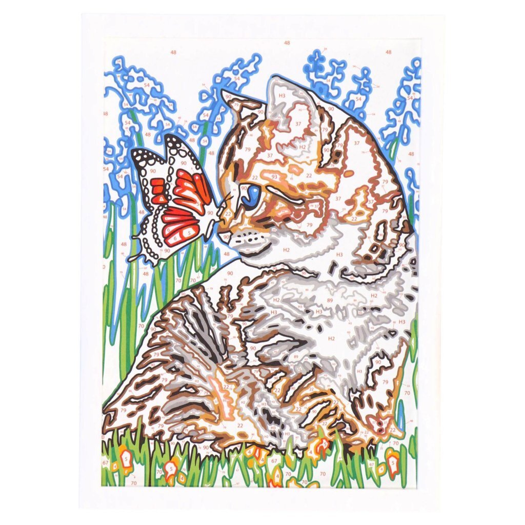 Schilder de genummerde vlakken om een prachtig schilderij van een kat en een vlinder te maken. Afmeting: 18 x 24 cm. Inhoud: schilderij, verfkwastje, 15 kleuren verf, lijstje, en instructies. Geschikt voor kinderen vanaf 9 jaar.