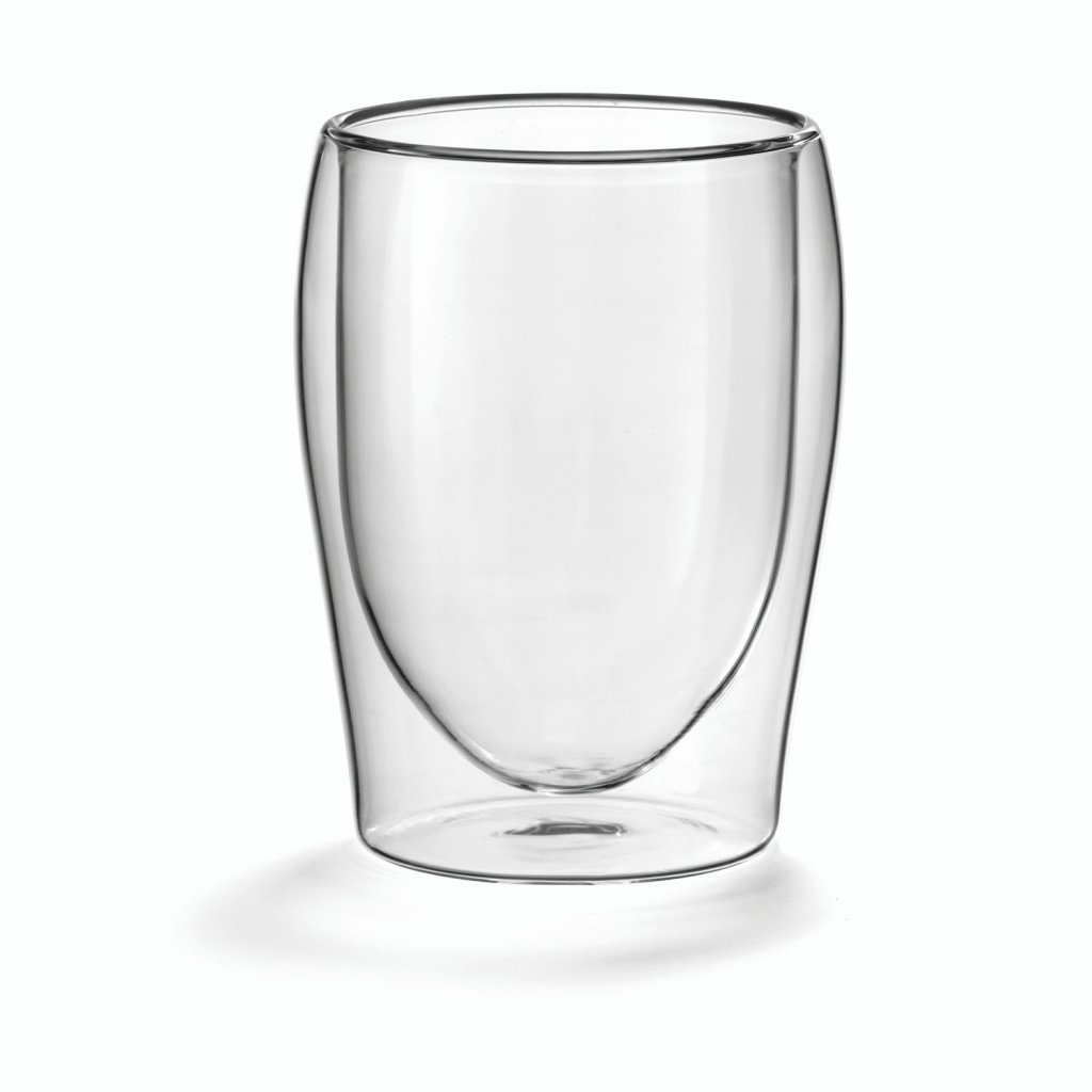 • Het dubbelwandige borosilicaatglas werkt isolerend, zo blijft warme drank warm en koude drank koud.