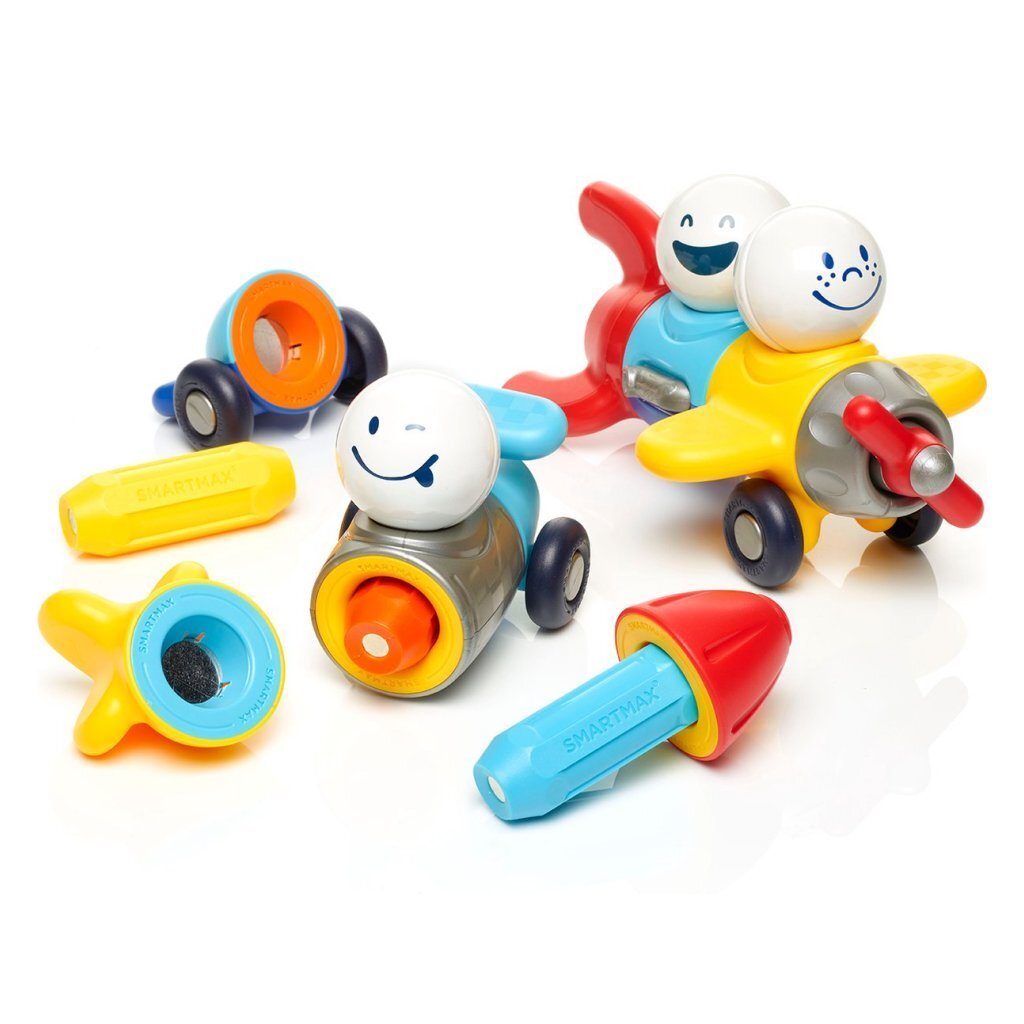 Ontdek de wereld van SmartMax met My First Explorers, een magnetische speelset die naadloos integreert in het SmartMax universum. Combineer alle onderdelen en bouw een te gek vliegtuig of dolle auto en laat je verbeelding de vrije loop. De verschillende onderdelen klikken magnetisch op een SmartMax staaf. Je kan je voertuigen bouwen rond de korte staaf of een nog langere versie maken door de lange staaf te gebruiken. My First Explorers stimuleert de fantasie, creativiteit en fijne motoriek en bevordert de hand-oog coördinatie. Geschikt voor kinderen van 1 tot 5 jaar.
