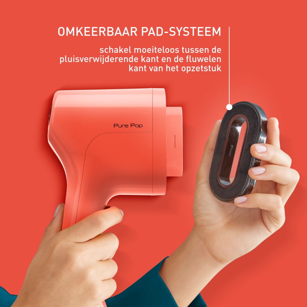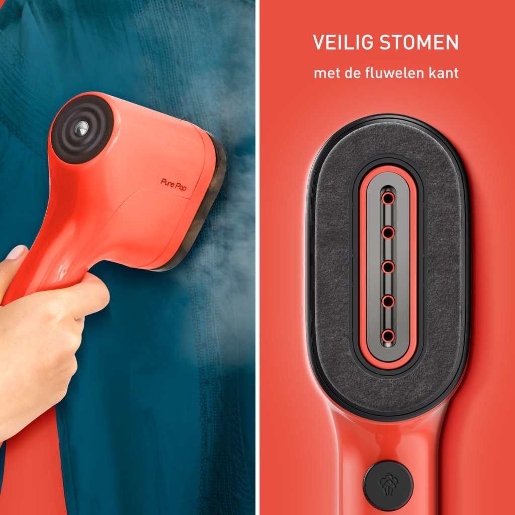 Altijd bij de hand, stoom elke kledingstijl waar je ook bent Maak kennis met de Tefal Pure POP, je persoonlijke kledingstomer waarmee je er altijd stijlvol uitziet, ook onderweg. Deze handzame kledingstomer is zeer intuïtief en biedt volledige verzorging in één soepele en natuurlijke beweging. Het exclusieve omkeerbare pluis- en fluwelen opzetstuk zorgt voor moeiteloos wisselen, met een ultracompact en slank ontwerp om overal mee naartoe te nemen! Met Pure POP til je kledingverzorging naar een heel nieuw niveau… en dat alles met een vleugje sprankelende stijl.