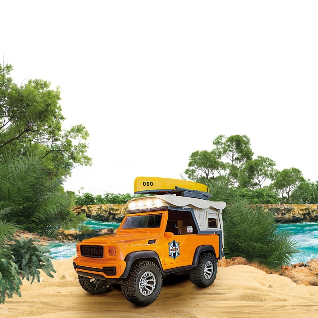 De auto met frictie heeft geluidseffecten, en lichteffecten in de vorm van werkende lampen. Boven op de auto ligt een kano, waarmee leuk gespeeld kan worden. Geschikt voor kinderen vanaf 3 jaar.
