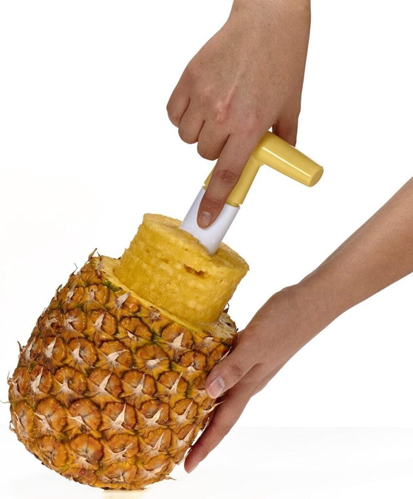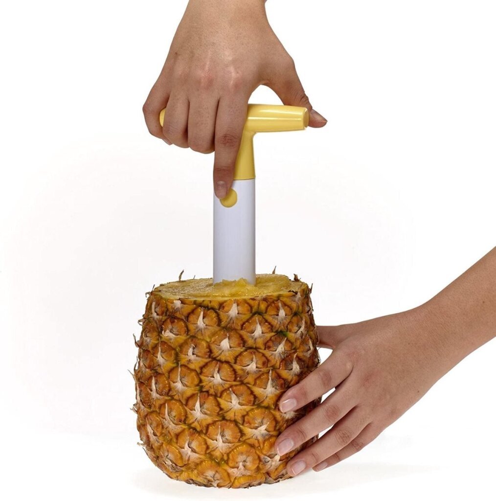 Met deze ananassnijder kun je je ananas schillen, ontpitten en in ringen snijden. Ideaal voor elke ananasliefhebber!